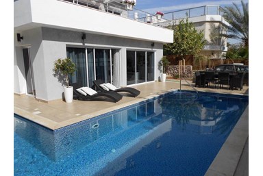 בחצר הוילה תהנו מבריכה גדולה ונקייה הממוקמת החצר מרוצפת. סביב הבריכה פינת ישיבה, שולחן, מיטות שיזוף ופינת מנגל.