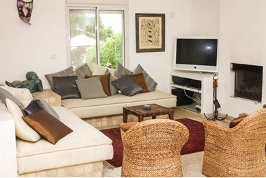 הוילה בנויה ממרחב משותף וחדרים פרטיים. במרחב המשותף מספר פינות ישיבה, פינת אוכל גדולה עם דלתות יציאה אל הגינה והנוף, אח עצים ומטבח מאובזר: מקרר / מקפיא גדול, תנור וכיריים גז נפרדים, טוסטר, מיקרוגל, מערכת חשמלית לסילוק פסולת, מתקן למים חמים וקרים, מדיח כלים, מכונת קפה ועוד. בוילה 4 חדרי שינה זוגיים הכוללים: סוויטת הורים עם יציאה לגינה ובה מיטת king size, טלוויזיה עם חיבור ללווין ומערכת שמע מתקדמת, מכשיר dvd, חדר ארונות וחדר רחצה גדול ובנוסף, שלושה חדרי שינה נוספים בשניים מהם מיטה זוגית, ויציאה מהחדר לחצר. בחדר שינה הנוסף מיטת יחיד הנפתחת למיטה זוגית. חדרים אלו חולקים חדר רחצה ושירותים סמוך.