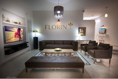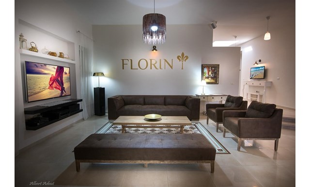 מתחם הפנים של וילה פלורין כולל שפע פינוקים מפתים, עם מערכת ישיבה איכותית במיוחד, עיצוב מודרני עם צבעי לבן וחום המעניקים תחושת שלווה וביתיות, מסך טלוויזיה גדול וקונסולת משחקים יוקרתית לבילוי משותף עם בני המשפחה והחברים.