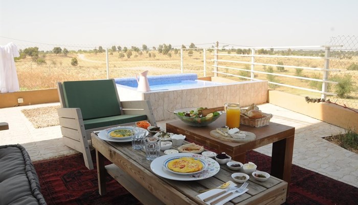 בא מדבר - ממוקמת על קצה הגבעה ומשקיפה היישר אל שיפולי המדבר. בחורף, ממש אל מול הסוויטה מתמלא אגם קטן וקסום. מעוצבת בסגנון כפרי ופשוט ואובזרת מיטה זוגית עם מזרן בריאות, חדר רחצה נעים, ספריית סרטי dvd, ספרים ומשחקי לוח, זולה עם פינת ישיבה המיועדת גם ללינת לילדים, מקרר, טוסטר אובן, פינת קפה עשירה והדובדבן שבקצפת בריכת שכשוך חמימה ומפנקת תחת כיפת השמיים.
